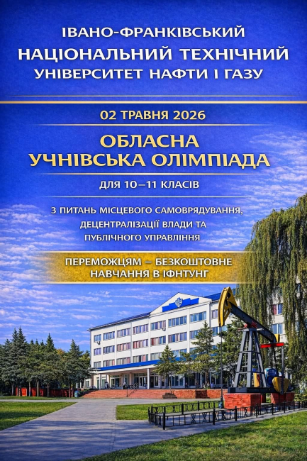 2 травня (субота) о 10:00 в Інституті гуманітарної підготовки та державного управління ІФНТУНГ відбудеться 8-ма учнівська олімпіада з питань місцевого самоврядування, децентралізації влади та публічного управління.