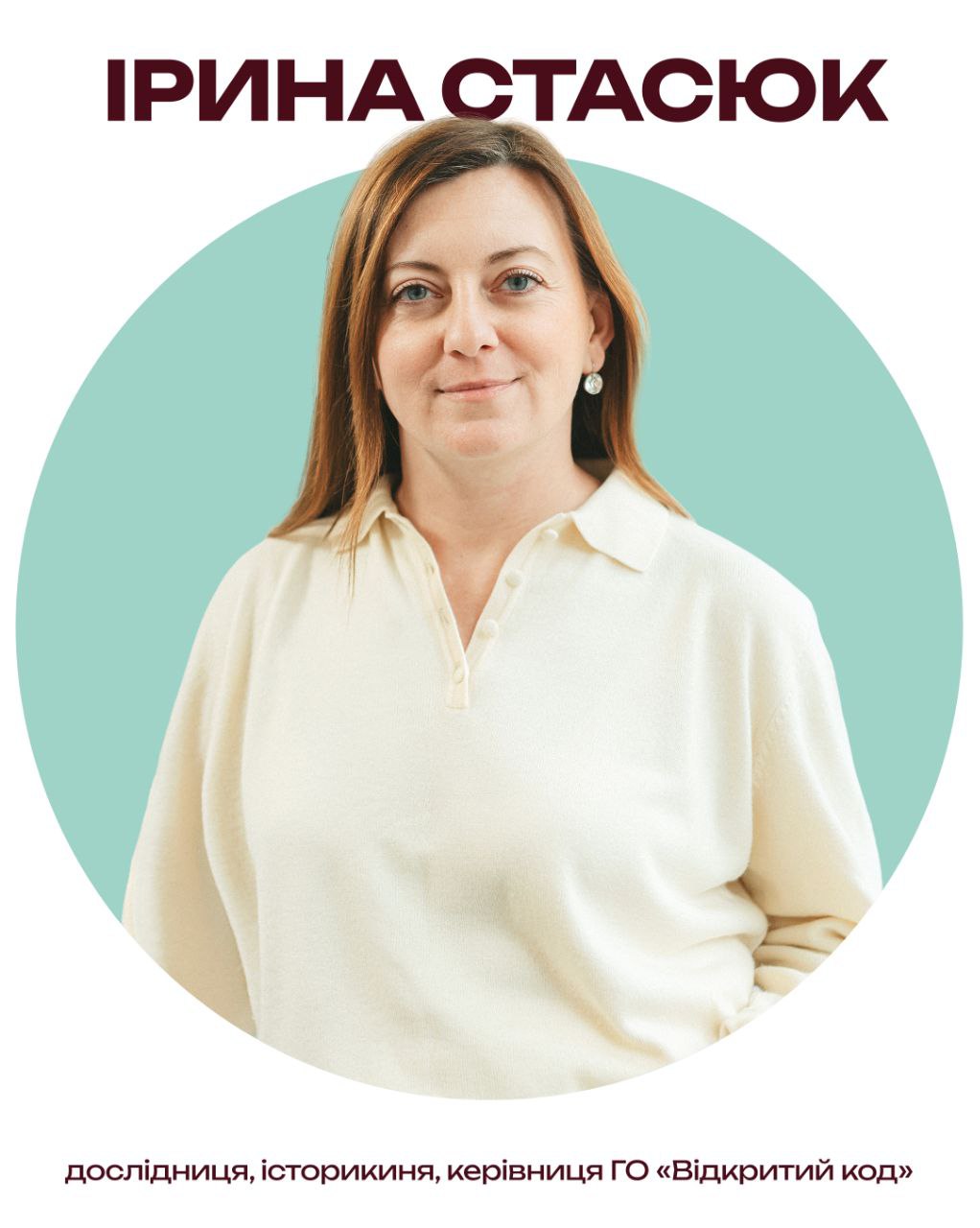 •  Модератока: Ірина Стасюк, дослідниця, історикиня, керівниця ГО «Відкритий код».