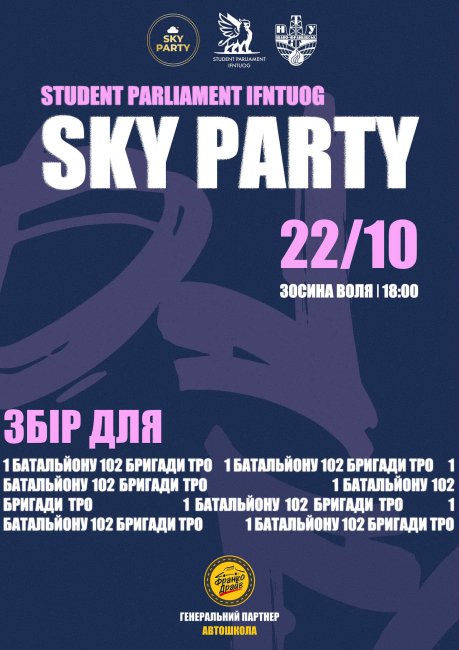 За квитками — ауд. 0.310 або пишіть в дірект, якщо ви не з ІФНТУНГ @sky_party_if