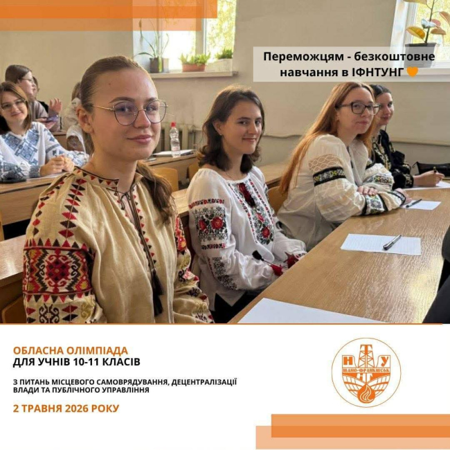 2 травня (субота) о 10:00 в Інституті гуманітарної підготовки та державного управління ІФНТУНГ відбудеться 8-ма учнівська олімпіада з питань місцевого самоврядування, децентралізації влади та публічного управління.