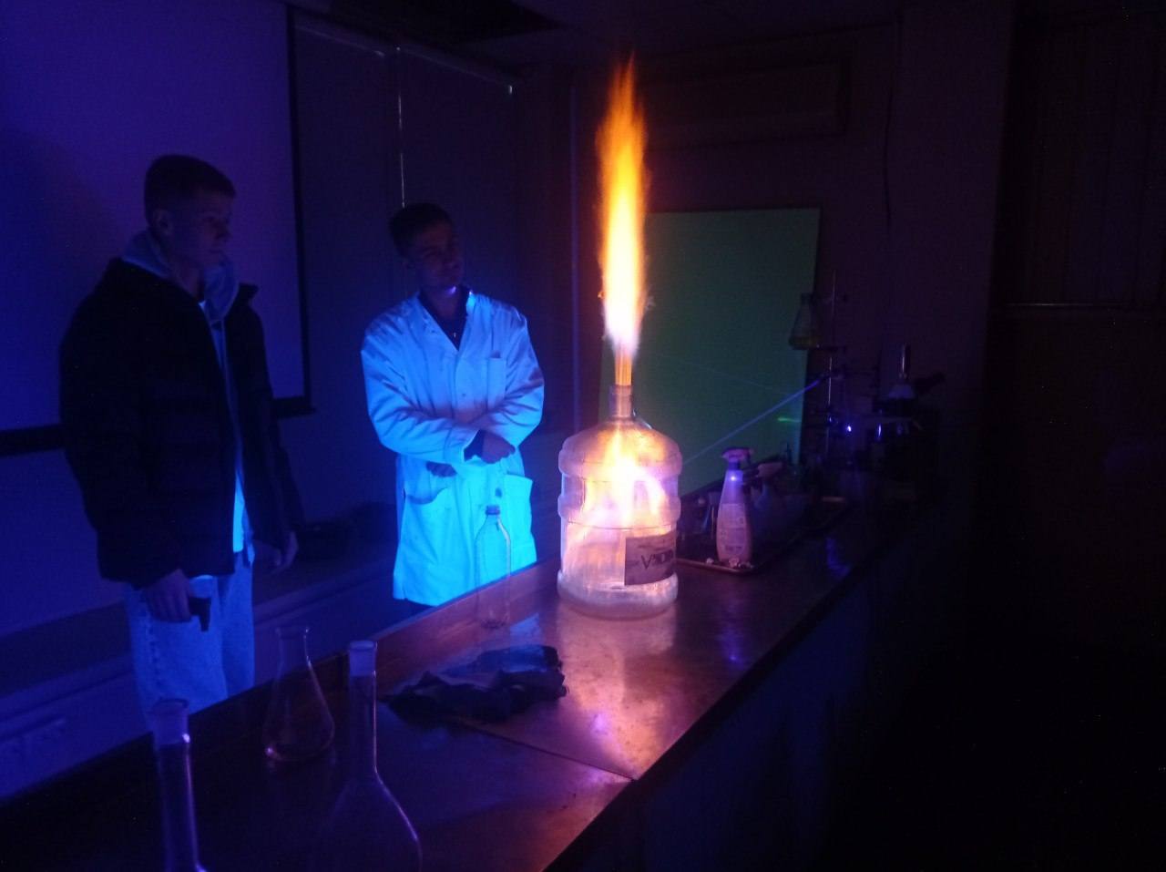Тут хімія перестає бути просто формулами з підручника – вона перетворюється на яскраву науку, яку можна побачити, відчути й зрозуміти. Демонстрацію провів студент кафедри технології захисту навколишнього середовища і безпеки праці Ілля Осташук – і зробив це так, що байдужих у залі точно не залишилось.