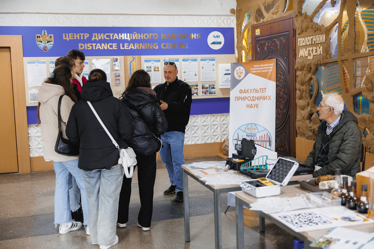 Кафедра геології та розвідки нафтових і газових родовищ представила на ній взірці корисних копалин, екологи – новітнє обладнання, зокрема прилади, які вимірюють вміст кисню у повітрі, температуру, вуглекислий газ. Тут старшокласникам розповіли про особливості навчання на факультеті, про можливості подальшого працевлаштування.