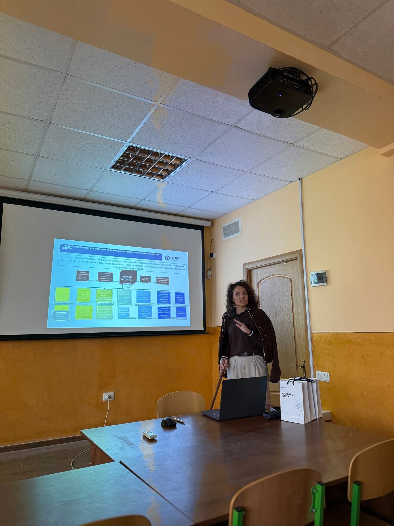 Пані Вікторія поділилася з майбутніми фахівцями своїм досвідом практичної роботи, розповіла про роль аналізу керну у формуванні петрофізичних моделей пластів, а також окреслила сучасні тенденції розвитку галузі. Лекція пройшла у теплій і водночас високопрофесійній атмосфері — студенти активно ставили запитання, обговорювали практичні кейси та отримали відповіді з перших уст досвідченої експертки.