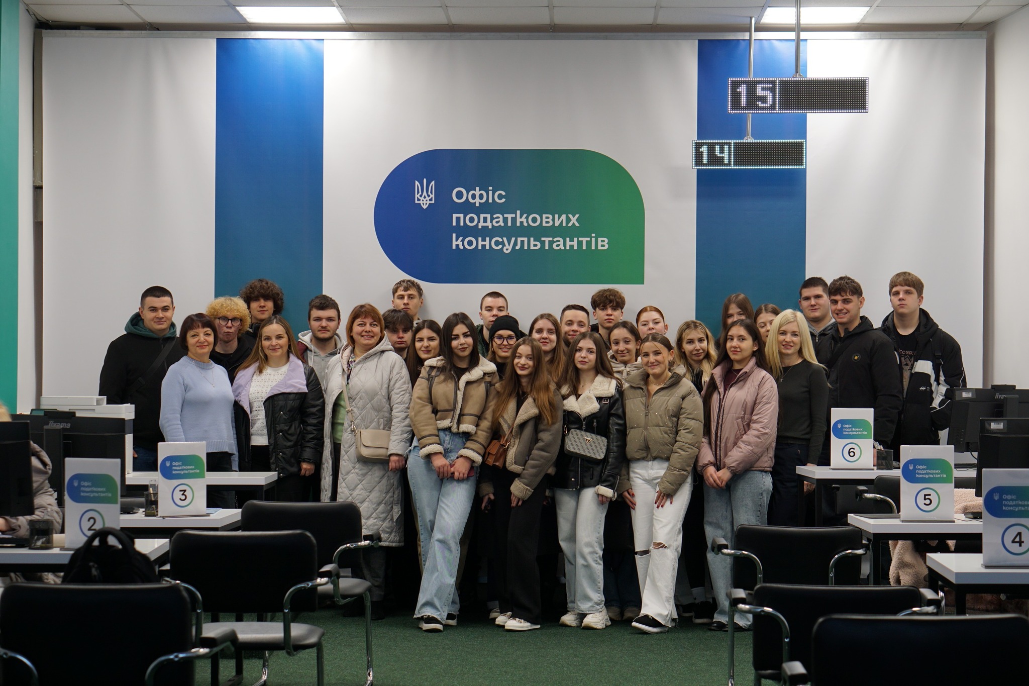 Під час зустрічі студенти дізналися про роботу Офісу податкових консультантів, який надає безкоштовні консультації платникам податків, допомагає підвищувати рівень податкової грамотності та уникати помилок у звітності.