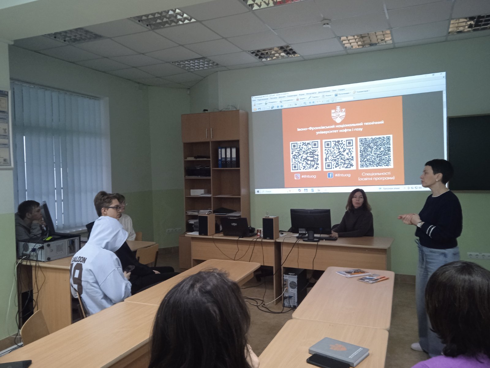 Були представлені можливості навчання в ІФНТУНГ, його відновлена матеріальна база, переваги працевлаштування, співпраця з партнерами університету тощо.