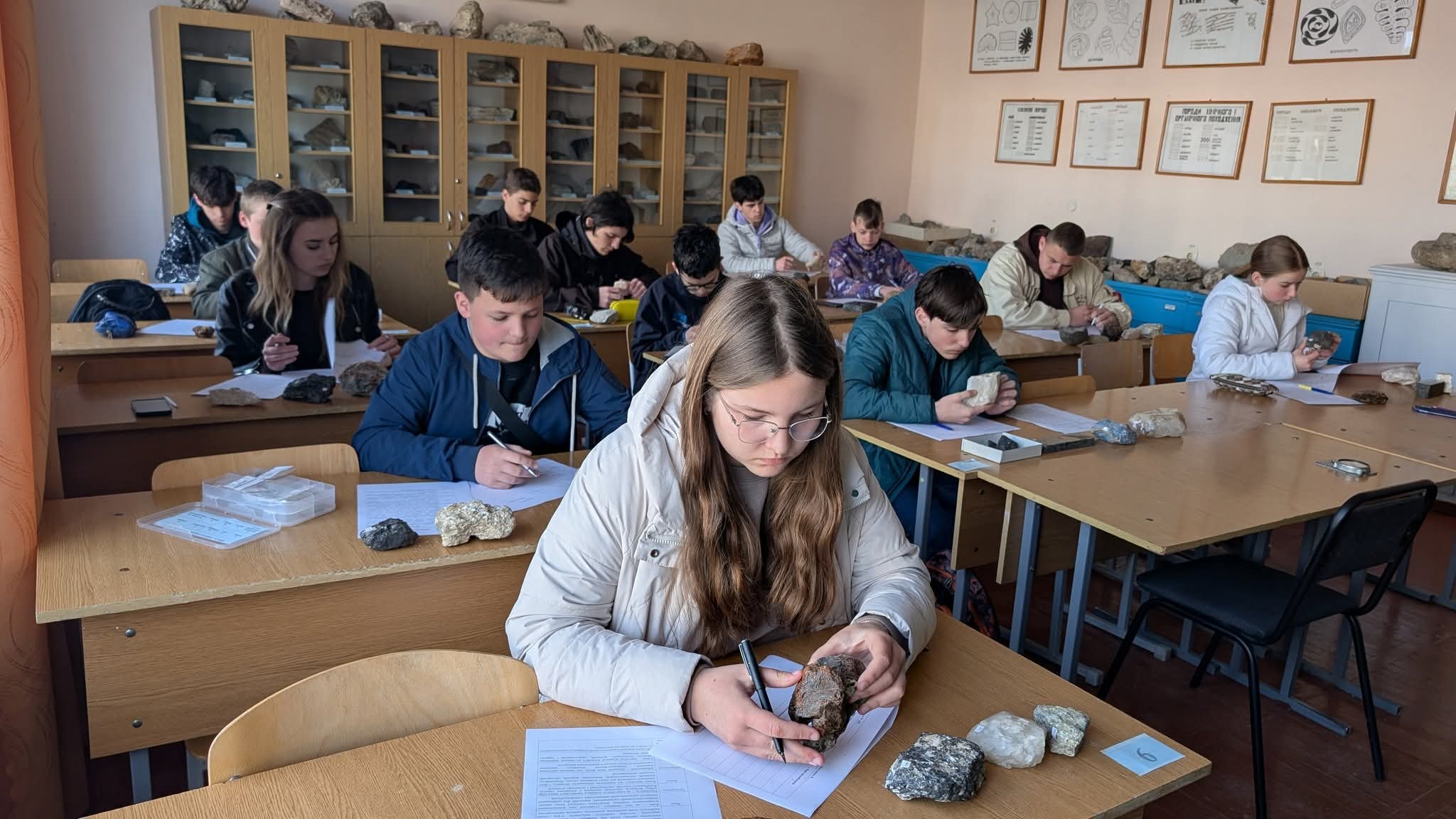 Другий тур вимагав уважності та аналітичного мислення — юні геологи описували зразки мінералів і гірських порід.