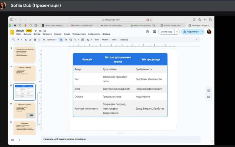 Лектор розкрила теоретико-методичні аспекти , зокрема звернула увагу на механізм управління операційним прибутком, системний підхід до управління прибутком, процес формування цінової політики підприємства та формування прибутку від фінансових операцій. Другу частину заняття провела запрошена лекторка і на практичних прикладах показала, як здійснюється управління прибутком на прикладі реального підприємства. Лекція супроводжувалася презентаціями ,які візуалізували зміст теми. За результатами лекції студенти отримали завдання опрацювати теоретико-методичні підходи до формування дивідендної політики підприємства.
