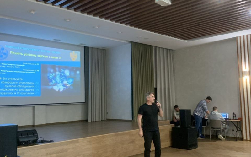 Серед представників провідних освітніх закладів Івано-Франківська свою участь у заході взяла і кафедра комп’ютерних систем і мереж ІФНТУНГ. Освітні програми кафедри представив завідувач кафедри професор Степан МЕЛЬНИЧУК, який зосередив увагу на двох напрямах підготовки, що пропонуються: