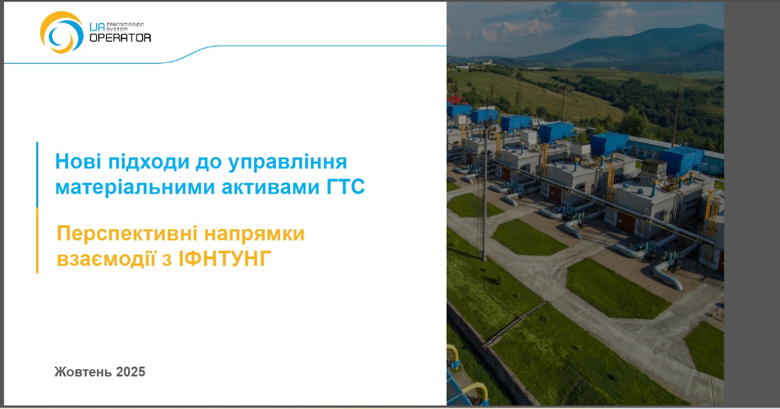 Представники ОГТСУ презентували своє бачення нових підходів до управління матеріальними активами ГТС, що є особливо актуальним в умовах скорочення обсягів транспортування, оптимізації потужностей та інтеграції з ринком газу ЄС. Було наголошено, що ці виклики вимагають розвитку нових компетенцій та потужного науково-технічного забезпечення. У рамках презентації ОГТСУ представив 24 конкретні ініціативи для співпраці, згруповані за напрямками: розробка нормативних документів, створення методик та цифрових моделей, дослідження і спеціальне навчання.