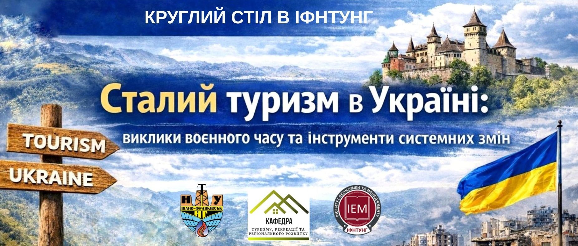 7 травня 2026 року запрошуємо вас до професійної дискусії в межах Круглого столу в ІФНТУНГ "Сталий туризм в Україні: виклики воєнного часу та інструменти системних змін".