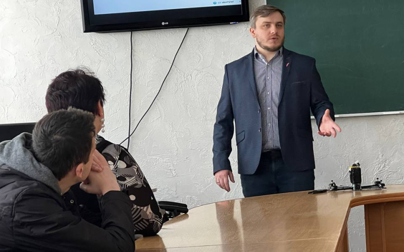 А доцент Андрій КСЕНИЧ просто запалив аудиторію розповіддю про Android-програмування та шалені перспективи ринку, особливо в напрямку FPV-дронів! Було тепло, цікаво та корисно – обмінялися досвідом і навіть подаруночки роздали! Дякуємо Коледжу електронних приладів за гостинність та активних студентів!