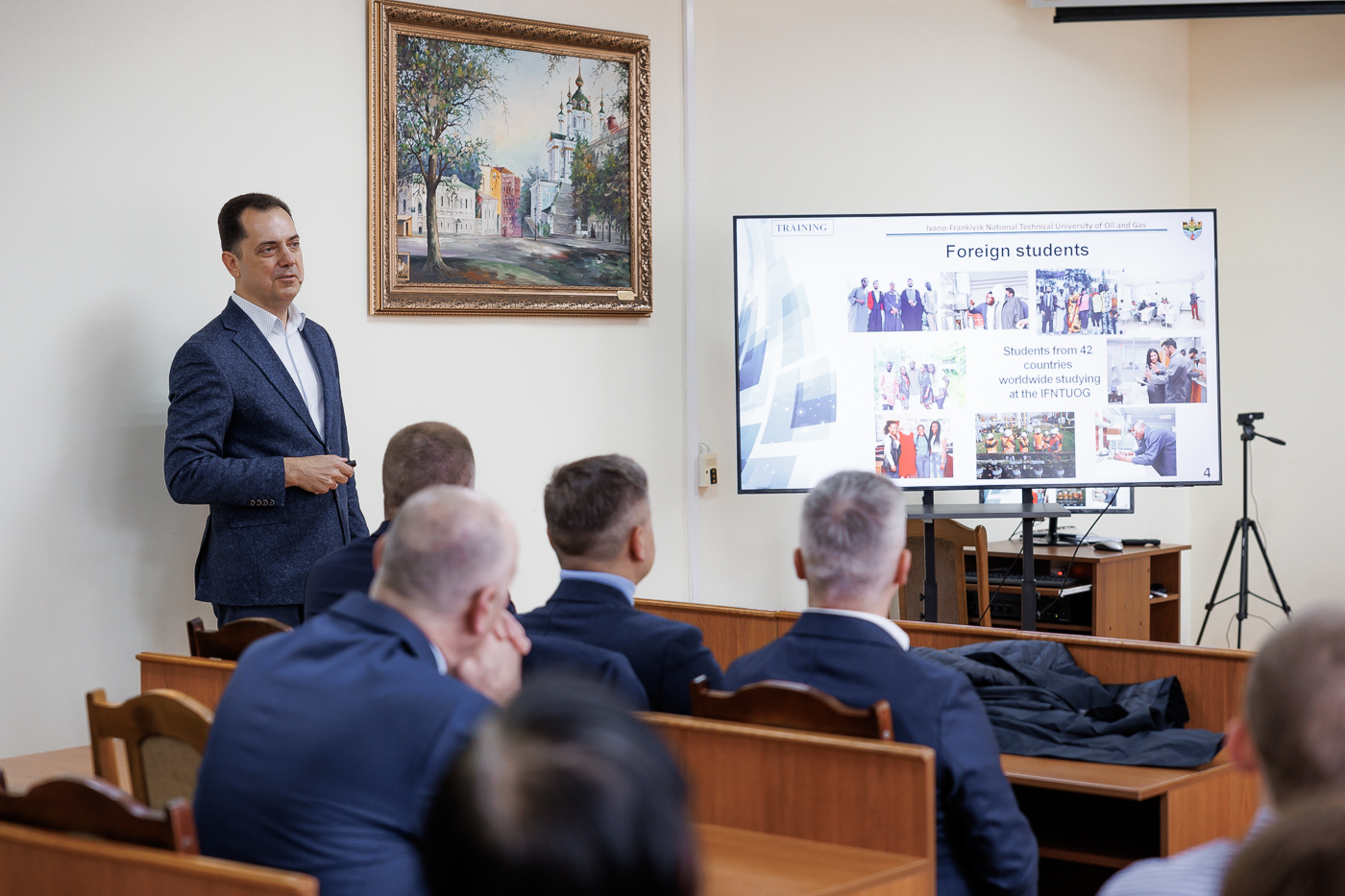 Вітаючи гостей, ректор Ігор Чудик підкреслив стратегічне значення співпраці, яка триває вже понад два десятиліття: «Насамперед ми вдячні партнерам за співпрацю, технологічні кейси, ефективність яких важко переоцінити. Адже це буріння та впровадження нових технологій у всьому світі, де перетинаються наші шляхи. 20 років співпраці, допомога у відновленні університету після ракетного удару та постійна присутність в нашому освітньому та інноваційному процесі. І от сьогодні ми починаємо писати новий розділ історії нашої співпраці – спільна дорожня карта для інновацій, навчання та впровадження нових технологій, коли увага акцентується на 3-D моделюванні та створенні освітнього середовища».