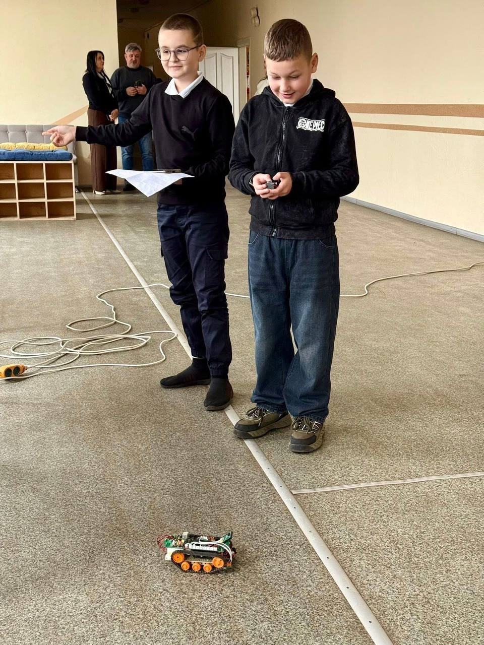 Діти з цікавістю спілкувались із завідувачем Кафедра комп'ютеризованого машинобудування Віталієм Панчуком, асистенткою кафедри Юлією Медвідь, студентом кафедри Владиславом Грищишиним, студентом кафедри Технології захисту навколишнього середовища і безпеки праці Іллею Осташуком.