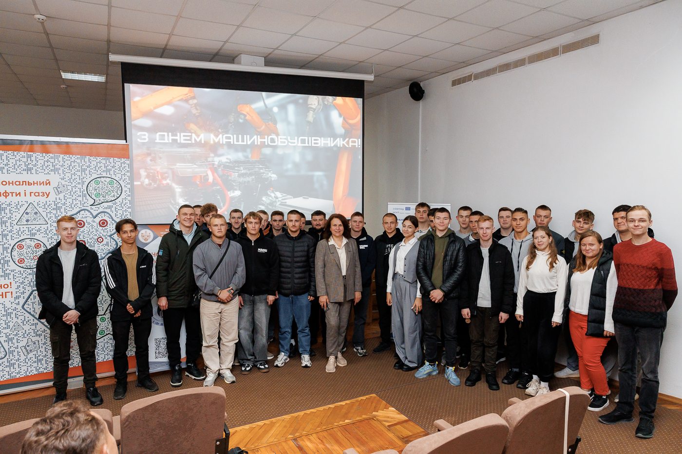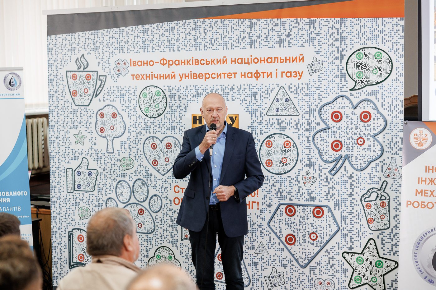 До зустрічі з першокурсниками долучилися й стейкхолдери — представники «Прикарпатського промислового кластеру» (очільниця Наталія Захарова), компанії МОТОРІМПЕКС (директор Дмитро Шевченко), компанії «Прогрестех», що працює на відому американську корпорацію Boeing (випускник ІФНТУНГ Назар Ільків), а також заводу КЗВВ (директор з персоналу Олександр Шевченко). Вони говорили про перспективи інженерних спеціальностей, високу затребуваність випускників на ринку праці, можливість кар’єрного зростання та перші кроки у професії, які студенти можуть зробити ще під час навчання.