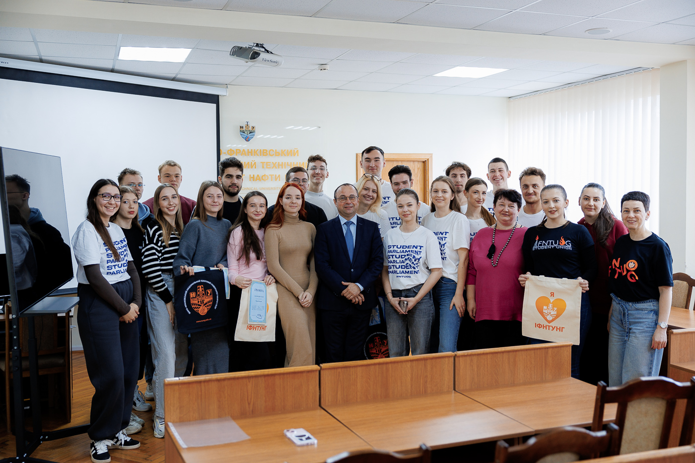 Влсне, його відзначення вже почалося – з Дня майбутнього студента, а сьогодні продовжилося зустріччю ректора ІФНТУНГ Ігоря Чудика з представниками Студентського парламенту та Студентського профкому.