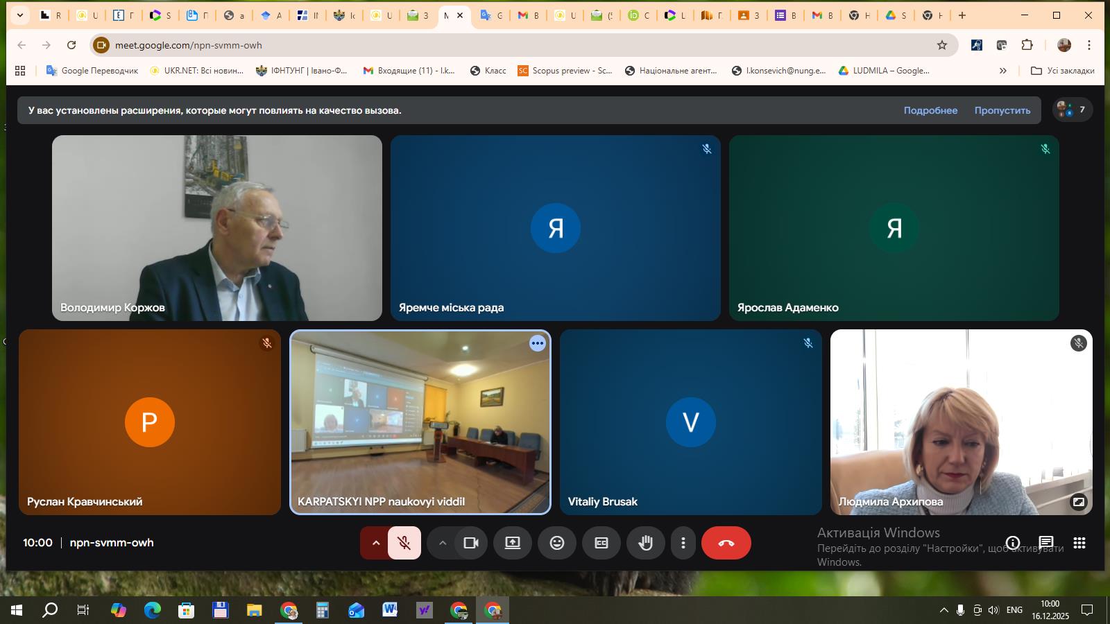 16 грудня 2025 року о 10 год. в Еко-туристичному візит-центрі Парку відбулось Науково-технічна Рада Карпатського національного природного парку, в якій взяли участь професори Архипова Людмила Миколаївна та Адаменко Ярослав Олегович. Чергове засіданні НТР Карпатського НПП відбулось у змішаному форматі.