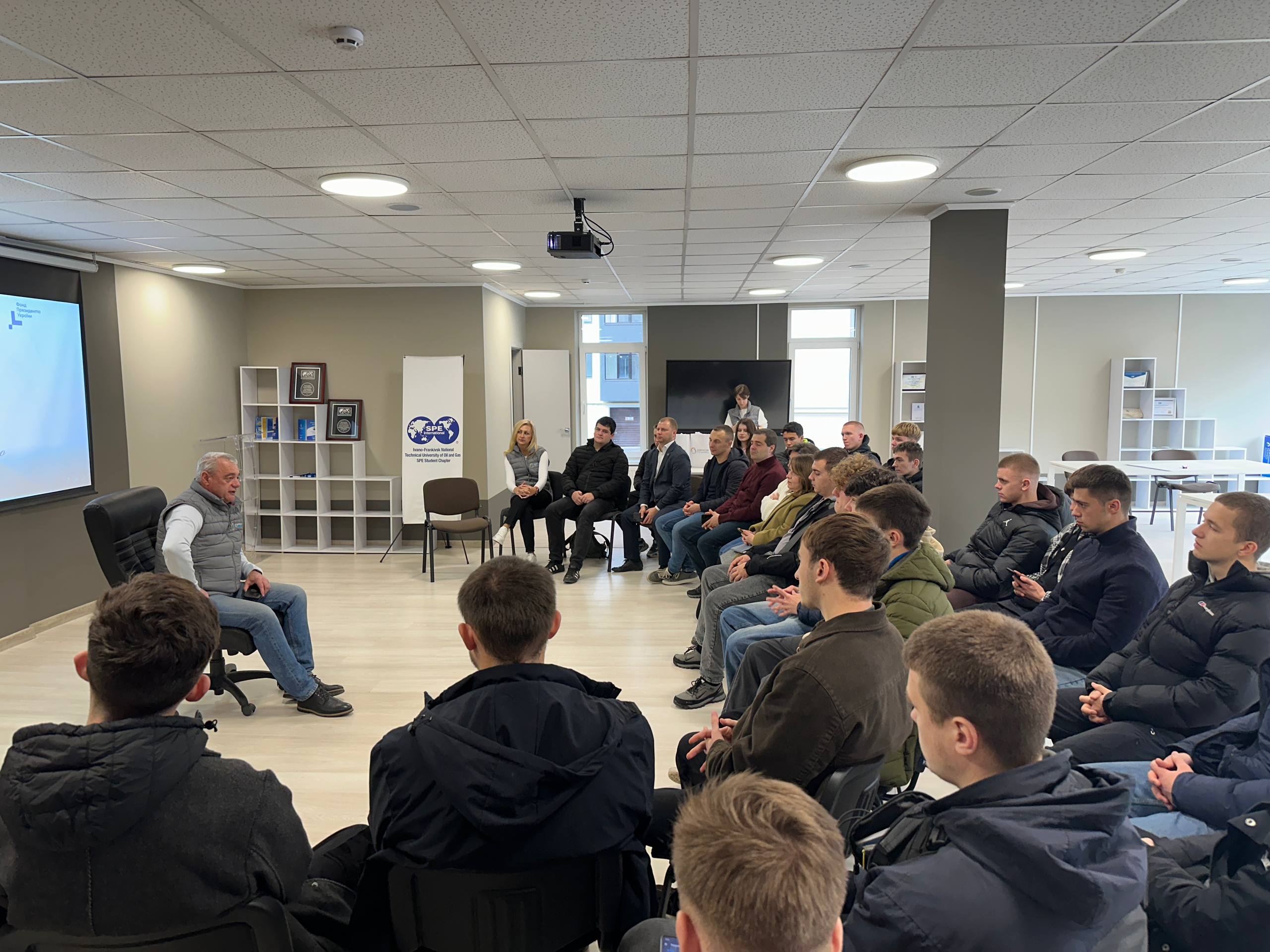Перша частина вказаної зустрічі пройшла у форматі відкритого діалогу з фахівцем високого кваліфікаційного рівня - заступником головного інженера Карпатського лінійного виробничого управління магістральних газопроводів (ЛВУМГ) Василем Костівим. Неформальна обстановка дозволила здобувачам освіти відійти від класичних академічних рамок і поставити прямі запитання щодо реальних викликів, з якими стикаються інженери на об'єктах критичної інфраструктури. Обговорення охопило широкий спектр тем - від технологічних нюансів експлуатації магістралей до перспектив модернізації мереж та впровадження інноваційних рішень. Найбільш активні учасники, які підготували найзмістовніші запитання, були відзначені пам'ятними призами від партнерів.