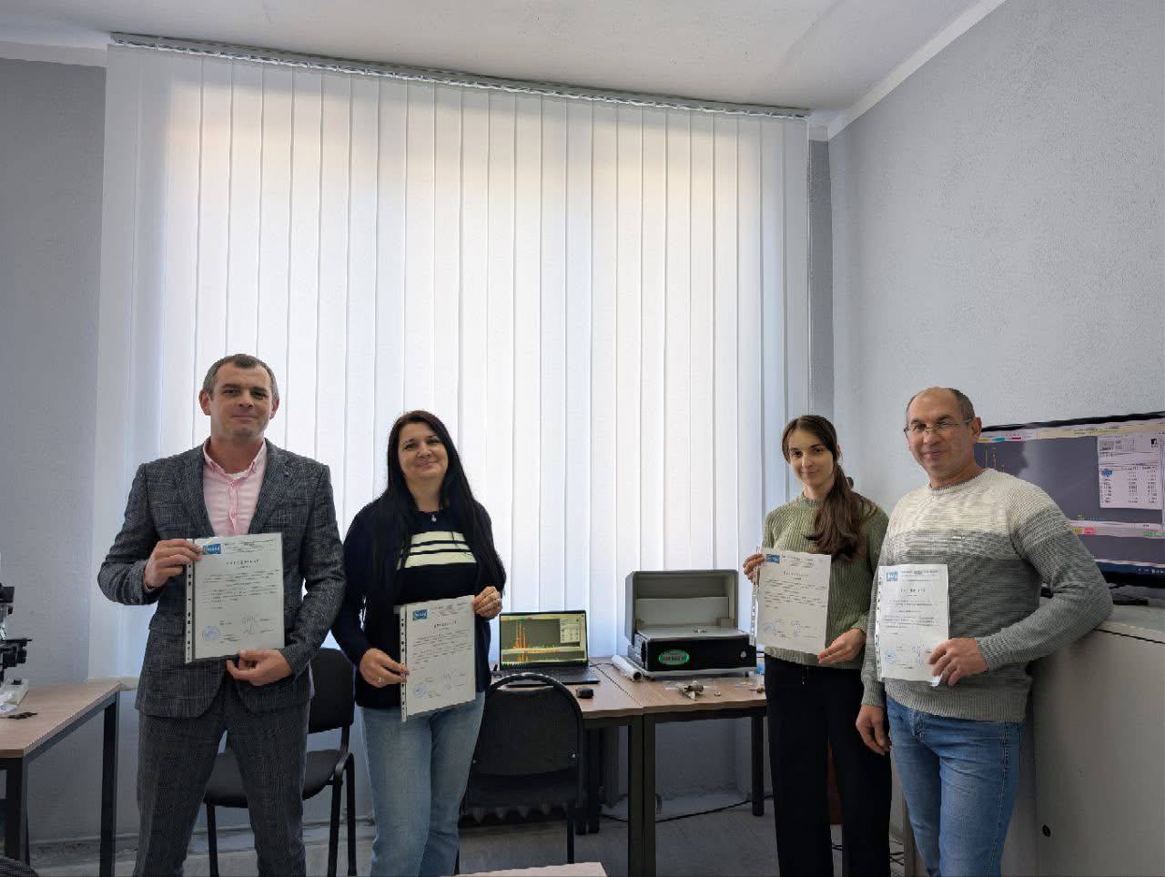 📚 Наші фахівці, Коцюбинський Андрій, Грицуляк Галина, Шиманський Володимир та Линник Діана, вже пройшли професійне навчання в інституті фізики НАН України у місті Києві та отримали сертифікати на право роботи з аналізатором.