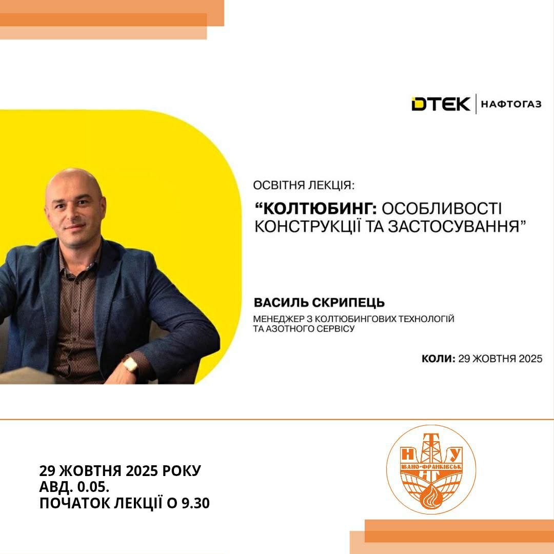 Івано-Франківський національний технічний університет нафти і газу запрошує студентів, викладачів та всіх зацікавлених на лекцію від партнера та стейкхолдера університету — компанії "ДТЕК Нафтогаз".