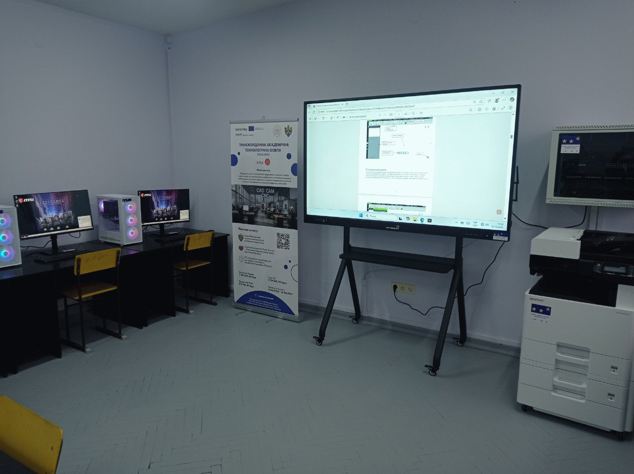 В Івано-Франківському національному технічному університеті нафти і газу в інституті інженерної механіки та робототехніки завершено ремонт та модернізацію комп’ютерного класу, що здійснено у межах міжнародного проєкту “Транскордонна академічна технологічна освіта (ATEd)” (ROUA00183). Проєкт реалізується за фінансової підтримки Європейського Союзу в рамках програми Interreg NEXT Румунія–Україна 2021–2027.