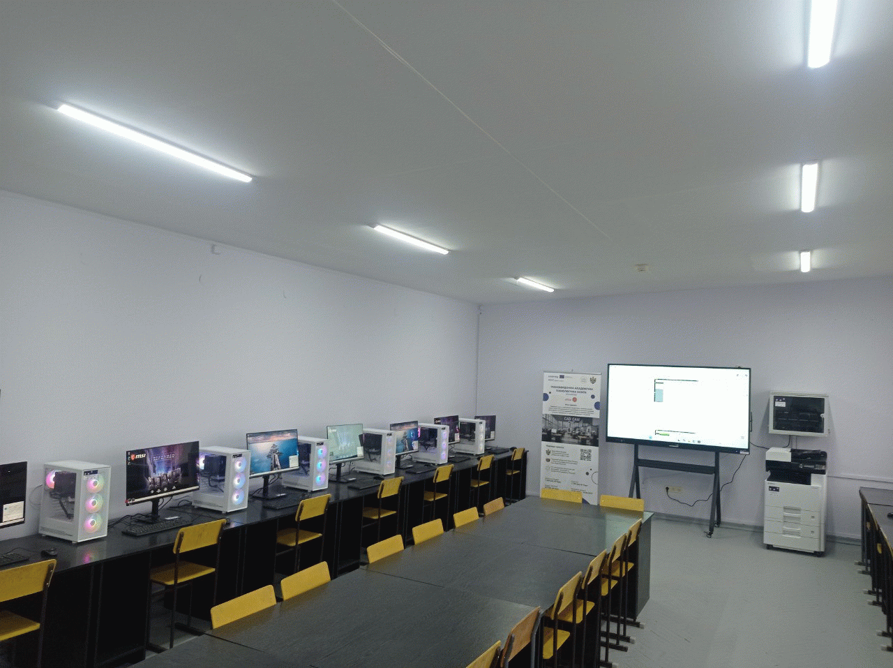 У результаті закуплено та встановлено новітнє обладнання, необхідне для сучасного інженерного навчання. Зокрема, комп’ютерний клас поповнився інтерактивною панеллю, фото- та аудіотехнікою, кольоровим принтером, а також потужними комп’ютерами, що забезпечують роботу з CAD/CAM/CNC технологіями, цифровим проєктуванням та системами автоматизованого виробництва. Оновлений простір стане комфортним та високотехнологічним майданчиком для підготовки студентів інженерних спеціальностей.
